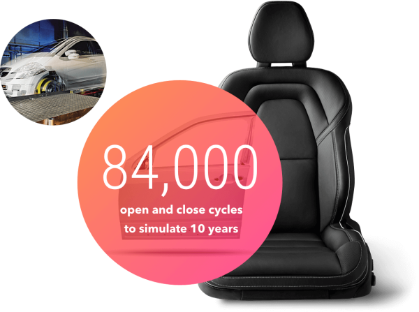 An auto needs to withstand years of tough duty, so researchers keep studying how to extend a vehicle’s life, both inside and out. Even seats are tested for durability. Using robots, automakers research how people of all shapes and sizes affect the upholstery, seat cushions and seat structures over the life of the vehicle. High performance extends to car doors too. It takes 84,000 open-and-close cycles to simulate 10 years of customer use of a car door. This testing happens in a wide range of temperatures, just like real life.
